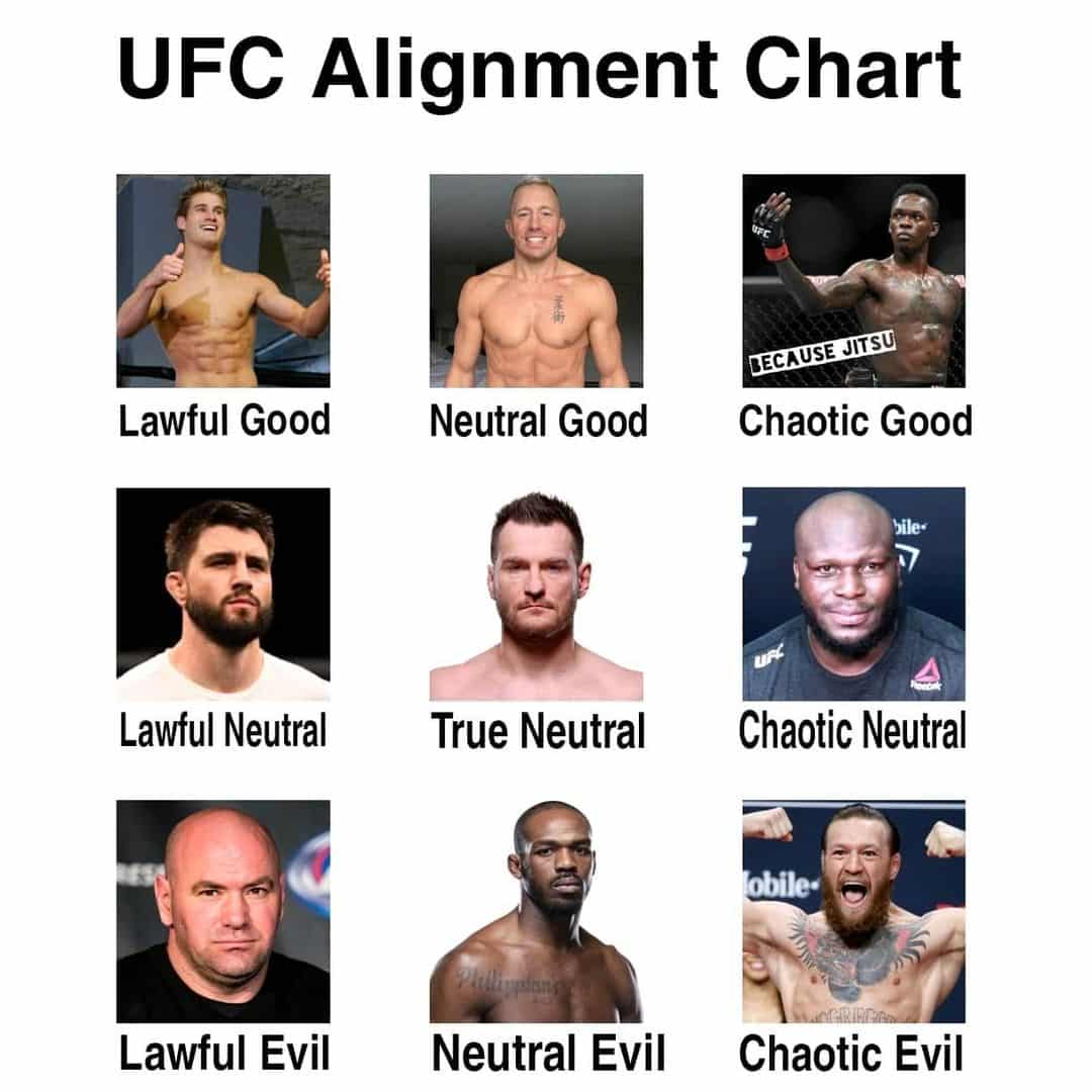 #UFC #MMA #BJJ #Jiujitsu #Grappling #MartialArts #DanaWhite #ConorMcgregor #GSP #Stylebender #Lawful #Neutral #Evil #Good #Chaotic