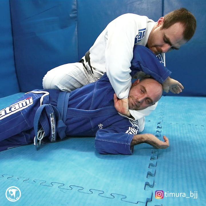 Notice that the classic Ezekiel choke is with the “chopping hand”, the hand without the grip. In this variation, because of the angle in which I am in, in relation to his neck, the choke is with the gripping hand. You have a choke with a wider and softer part of the hand, which means that you need to apply a bit more force than usual to make him tap.