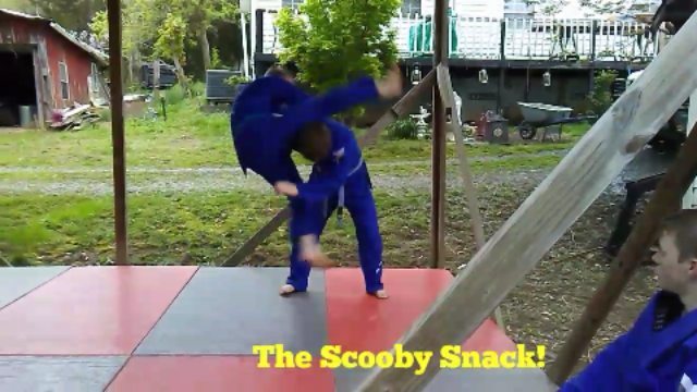 The Scooby Snack is an exciting flying triangle attack–specifically it’s called: Tobi-Yoko-Sankaku-Gatame. You get extra points if you yell: “Scooby Dooby Doo!” while flying through the air!