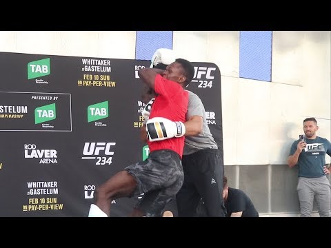 Israel Adesanya hits the Stunner, the Rock Bottom and The People's Elbow at UFC 234 Open Workouts